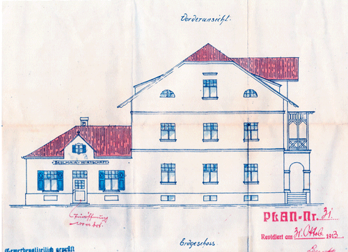 unten: Vorderansicht des »Sedlmair-Wirtschaft«, Plan 1913/1914.