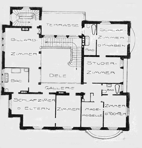 Grundriss Obergeschoss der Diesel-Villa, ebd.