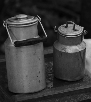 Das Milchholen war meist Aufgabe der Kinder. Während die Kleinen sorgsam und gewissenhaft ihre Pflichrt erfüllten, machten die größeren Kinder Kunststücke. Sie schleuderten den vollen Kübel so schnell es ging im Kreis herum. Stand er am obersten Punkt "auf dem Kopf", so spritzte trotzdem kein Tropfen heraus. Gelang der Versuch aber nicht, war das Unglück groß.