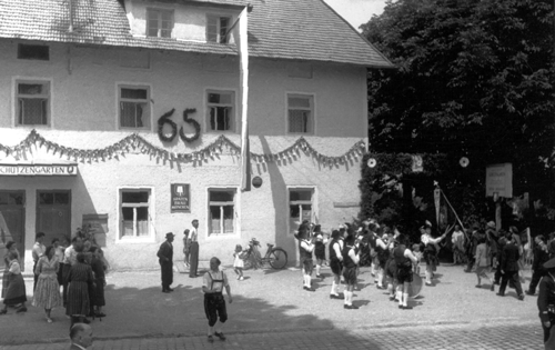 Feierlichkeiten anlässlich des 65-jährigen Bestehens des Schützenvereins vor dem Gasthof »Schützengarten«, 1956 © privat