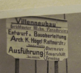 Bautafel für die Villa der Grichtmaiers, Ostpreußenstraße 58, 1927