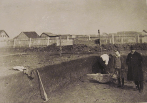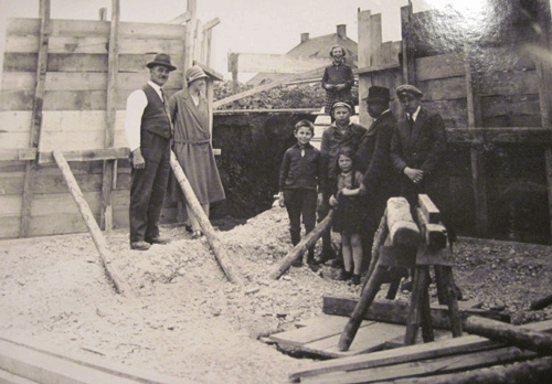 Familie Grichtmaier in der Baugrube, ca. 1928