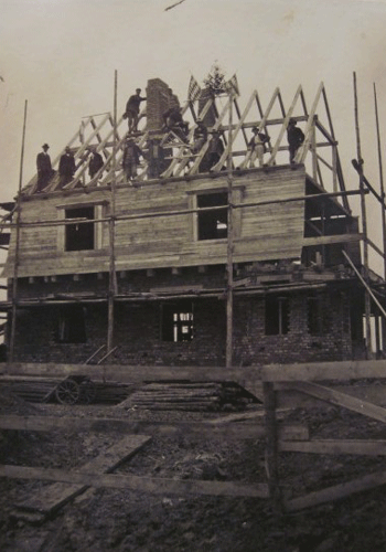 Nachdem der Grund von Hand ausgehoben, die Mauern hochgezogen und der Dachstuhl aufgerichtet war, wollte man Richtfest feiern. Dazu luden die Grichtmaiers den Kurat Friedrich Jakob und Wilhelm Flaschenträger, den Bürgermeister der Landgemeinde Daglfing ein. Auf die Frage: »Wo baust du denn?«, antwortete Grichtmaier: »In Denning, am Weg nach Englschalking.« Straßennamen waren bei uns noch nicht üblich, die Ostpreußenstraße hatte ihren Namen noch nicht. Flaschenträger, er hatte bekannterweise Ärger mit den Denningern wegen der Eingemeindungsverhandlungen nach München, lehnte schroff ab: »Nach Denning soll i kumma, na zu dene Kratler geh i net!« Und so wurde ohne Bürgermeister, aber mit kirchlichem Segen und den frommen Sprüchen der Zimmerleute gefeiert. 1929 zog die Familie ein.
