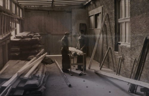 Dieses Werksgebäude wurde 1942 während des Kriegs auf Veranlassung des Generalluftzeugmeisters Ernst Udet (1896–1941) errichtet. Georg Grichtmaier und Udet sind im Ersten Weltkrieg Kriegskameraden gewesen, deren Kontakt zueinander nie abgerissen war, und so baute die Firma Grichtmaier diverse Holzteile für Flugzeuge. Damals hatten die Flugzeuge noch so manches Teil aus Holz, was heute aus Aluminium wäre. Die Firma hatte alles, was ein damals moderner Betrieb brauchte: Parterre – der größte Raum – die Werkhalle mit sechs Hobelbänken, südlich davon der Maschinenraum mit einer Absauganlage, nördlich die Werkzeugschleiferei, Waschraum und WC und im Keller die Holzbiegeanlage und die Trockenkammer. Diese Wagnerei dürfte zu damaliger Zeit die einzige Holzbiegeanlage in München gehabt haben.