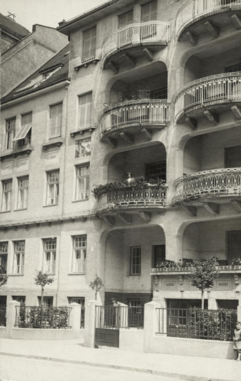 Abbildung oben: Doppelmietshaus Holbeinstraße 3/5, 1910. Dreigeschossiger, putzgegliederter Jugendstilbau mit Loggien-Balkon-Gruppe am flachen Mittelrisalit und Mosaiken, Architekt Max Kirschner, 1909/10. © Stadtarchiv München Sign. DE-1992-FS-PK-STR-00599