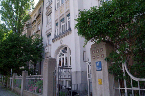 Errichtet 1907 (Inschrift am Haus) nach Entwürfen der Architekten Max Kirschner und Sigmund Waidenschlager, die auch für die Gebäude Nr. 4 und 8 verantwortlich zeichneten. Gleichzeitig waren die Architekten auch die Besitzer dieser drei herrschaftlichen Immobilien. Der viergeschossige, putzgegliederter Jugendstilbau mit Risalit und Zwerchhaus betont die Mittelachse und weist reiches plastisches und mosaiziertes Dekor auf – sogar in den Säulen des Pfeilerzauns.