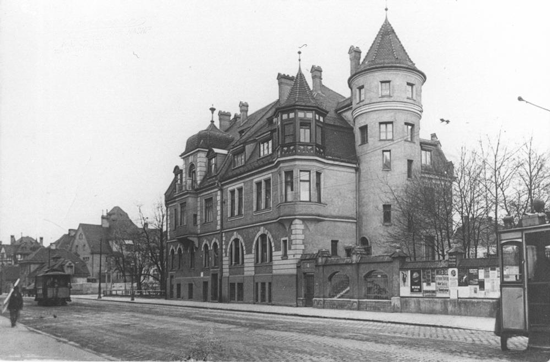 Das ehemalige Doppelhaus an der Ismaninger Straße 75/77 wurde um 1900 im Stil der »Deutschen Renaissance« mit einem Fachwerk-Eckturm und einem markanten Treppenhausturm errichtet. Haus Nr. 75 (links) beherbergt heute das Finnische Generalkonsulat, Haus Nr. 77 (rechts) ist komplett nach dem Zweiten Weltkrieg durch einen Neubau ersetzt worden. Die daran anschließenden Arkadenbögen stehen aber noch - heute jedoch als komplett geschlossene Mauer.