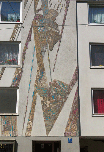 unten: Haus Ismaninger Straße 77 mit Mosaik des Heiligen Georg im Drachenkampf, 2007 © dietlind pedarnig
