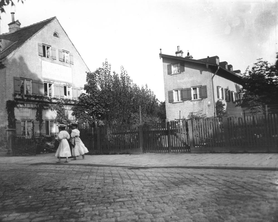 Haus Ismaninger Straße 108. Fotografie Georg Pettendorfer 28.9.1907. Quelle: Stadtarchiv München, DE-1992-FS-NL-PETT1-1374. Links Haus Ismaninger Straße 110.