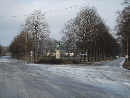 Das Gasteiger-Reiterstandbild an der Kreuzung Schichtl - / Landshamer Straße, am Rande des ehemaligen KZ-Außenlagers; dietlind pedarnig, 2009