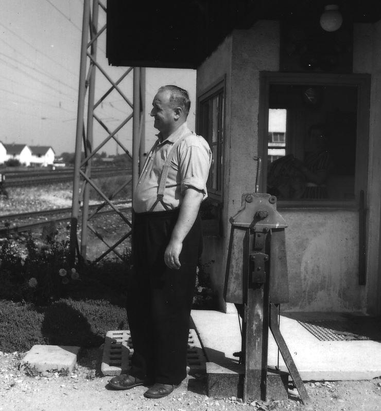 Kohlenhändler und Schrankenwärter Willi Modl vor "seiner Schranke" am Daglfinger Bahnhof um 1960 © helmut keller
