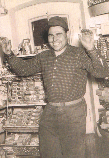 Kohlenhändler Josef Forstmeier in seinem Lebensmittelgeschäft, Zoppoter Straße 30 (Ecke Ostpreußenstraße) in den 1950er-Jahren © Verein für Stadtteilkultur im Münchner Nordosten e.V.