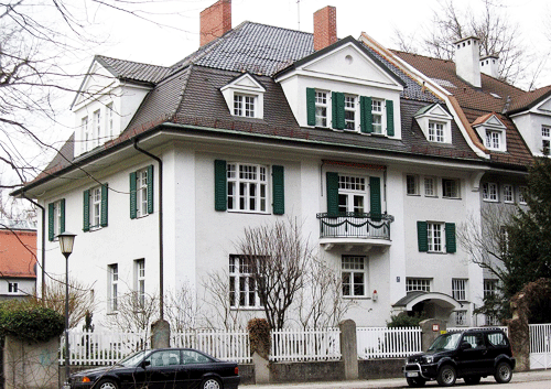 Münchens produktivster Architekt um die Jahrhundertwende, der Thüringer Paul Böhmer, errichtete 1908 die malerische Doppelvilla in der Kolbergerstraße für Hermann Graf zu Castell-Rüdenhausen (1872–1941). Das Grundstück für das Bauvorhaben hatte dessen Frau Freda Gräfin zu Castell-Rüdenhausen erworben.