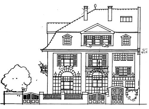 Plan des Architekten Paul Böhmer für die Ostfassade des Hauses Kolbergerstraße 31, 1908.