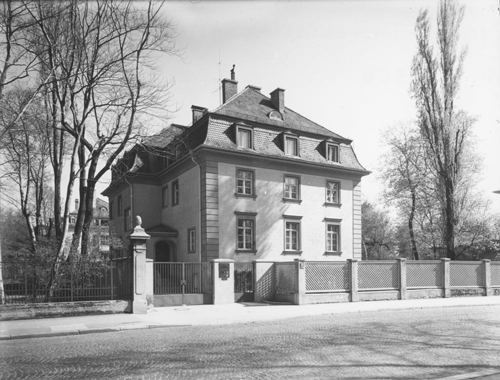 Die von Architekt Carlo Sattler 1922 bis 1923 errichtete Mansardendachvilla für F. von Uthemann fügt sich ein in das äußere Erscheinungsbild der benachbarten Bauten aus der Zeit um 1900. Die Innenräume waren ganz historistisch in verschiedenen Stilen vom Architekten entworfen und mit neu angefertigten »stilechten Möbeln« ausgestattet: Empire-Salon und Biedermeier-Speisezimmer im Inflationsjahr 1923.
