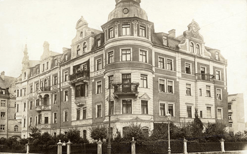 oben: Prinzregentenstraße 73 und Trogerstraße 48 im Jahr 1910 © Stadtarchiv München, Sign. DE-1992-FS-PK-STR-03472