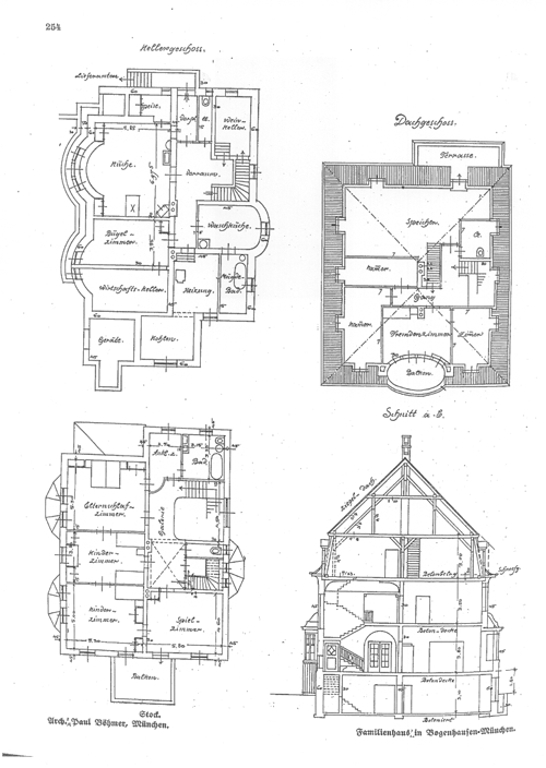 Abbildungen von oben nach unten: (alle aus: Der Bau, Neue Folge der bautechnischen Zeitschrift, 28. Jg., Nr. 34, 23.8.1913, Beilage Nr. 32, S. 250f.)