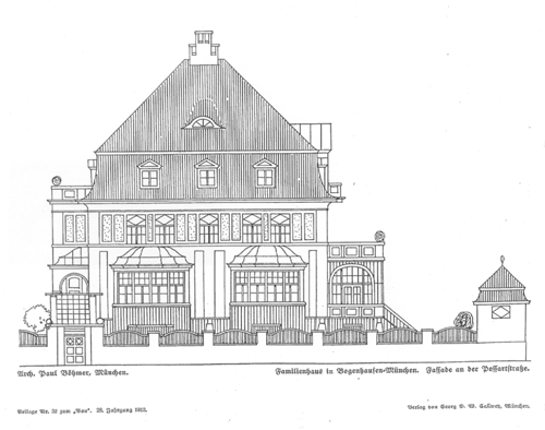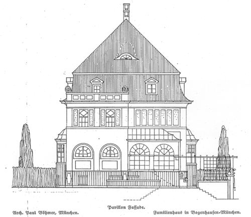 Als der Königliche Hofschauspieler Richard Stury im Jahr 1911 anlässlich des 90. Geburtstags des Prinzregenten Luitpold zum Königlich Bayerischen Hofrat ernannt wird und der Magistrat der Stadt München eine Straße in Schwabing nach ihm benennt, ist er auf dem Gipfel seines künstlerischen Ruhms. Wen wundert es, dass nun auch eine repräsentable Bleibe in einer angemessenen Wohngegend für die sechsköpfige Familie gesucht wird. Da man nach eigenen Aussagen Sturys in »glänzenden pekunären Verhältnissen« lebt, will man in eigene vier Wände ziehen und noch im gleichen Jahr wird Architekt Paul Böhmer beauftragt, Pläne für eine Villa zu entwerfen. Schon 1912 können die Sturys von der Steinsdorfstraße 18 nach Bogenhausen übersiedeln. 1913 findet die großzügige Villa in der Zeitschrift »Der Bau« höchste Anerkennung als »beispielhaftes Familienhaus gehobenen Anspruchs«.