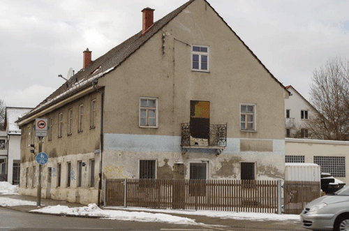 unten: Das verwahrloste Gebäude Eggenfeldener Straße 63 © hpt © Verein für Stadtteilkultur im Münchner Nordosten e.V (2015)
