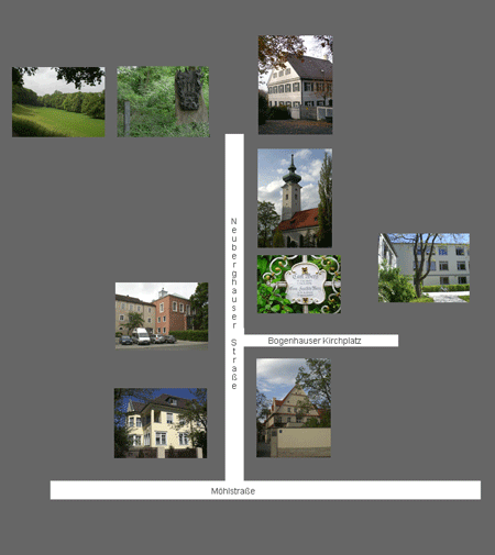 Am Bogenhauser Kirchplatz und in der Neuberghauser Straße in Bogenhausen scheint die Zeit in der Großstadt München noch heute still zu stehen. Das mag zum einen mit der ruhigen und idyllischen Lage an den Ausläufern der Maximiliansanlagen, oben an der Hangkante des Isarrains, zusammenhängen, zum anderen aber auch mit dem dörflichen Eindruck, den das architektonisch geschlossene Ensemble von Kirche, Friedhof und stattlichem Pfarrwiddum von St. Georg vermittelt.