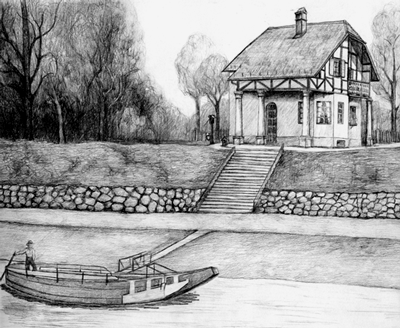 unten: Zeichnung von Karin Bernst, in: "Ein Spaziergang durch den Münchner Nordosten", Kalender 2001