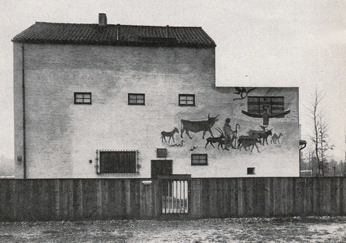 Das Einfamilienhaus des Architekten Max Schoen im Bogenhausener Herzogpark wurde 1929/30 von Architekt Ulrich Schön (Schoen?), einem Kollegen von Carl Jäger, entworfen und nach Kriegszerstörungen von seiner Witwe Hilde Schoen wieder aufgebaut. Die Nordfassade beherrschte ein großes Zementsgraffito mit einer Darstellung der Arche Noah (gemalt von Prof. Lois Gruber). Die Tochter Margarethe erinnert sich: »Noah selber im weiten Rock. Er hatte eine ziemliche lange Nase, man erkannte seine semitische Abstammung. So ließ unser Vater im Dritten reich eine Trauerweide davor pflanzen ... Für unsere Mutter war das Spruchband über dem Bild das Motto ihres Lebens: Gott ist ein starker Hort.« Nach dem Verkauf des Hauses 1999 wurde der Bürobau (rechts im Bild oben) aufgestockt und das Sgraffito übermalt.