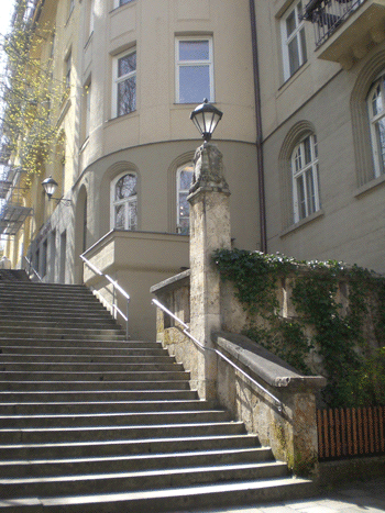 der von Eugen Drollinger im neubarocken Stil entworfene Treppenaufgang von der Herzogparkstraße zur Montgelasstraße hinauf © dietlind pedarnig (2008)