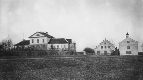 Das Höchl-Schlössl (links) mit Wirtschaftsgebäuden (Originaltitel: »v. Erff«). Fotografie von Georg Pettendorfer, 24.2.1917. Quelle: Stadtarchiv München, Sign. DE-1992-FS-NL-PETT1-0222