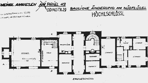 Höchl-Schlössl, Plan des Erdgeschosses, 1926, Stadtarchiv München, Lokalbaukommission 12289.
