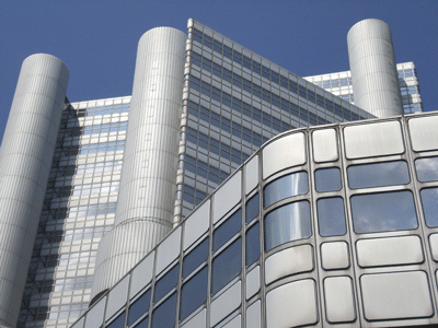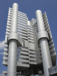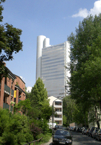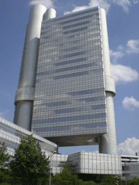 Der Hypo-Tower mit dem Eingangsbereich an der Richard-Strauss-Straße und seinen Flachanbauten © HypoVereinsbank / HG Esch
