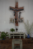 Fotos Mitte: der Betsaal der Evangelisch-Lutherischen Gemeinde Denning mit dem 1948 gemalten Fresko von Prof. Günther Vogelsamer im Jahr 1948; (Quelle: Pfarramt Immanuelkirche) und im Jahr 1960 ( © helmut keller). Das Gebäude das mit einem Spitzdach und einem eigenen kleinen Glockenstuhl ausgestattet war, wurde 1965 beim Bau der Immanuelkirche abgerissen.