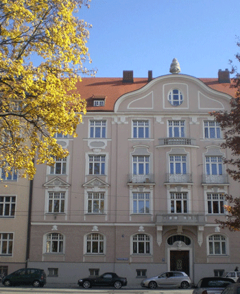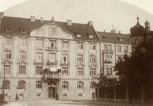 Blick aus der Siebertstraße auf das Haus Ismaninger Straße 74. Ansichtskarte 1905. Quelle: Stadtarchiv München, DE-1992-FS-PK-STR-03207