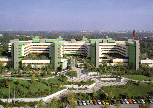 Vom Bildhauer Fritz Koenig stammt die Plastik "Große Zwei VI" aus Bronze am Eingang.