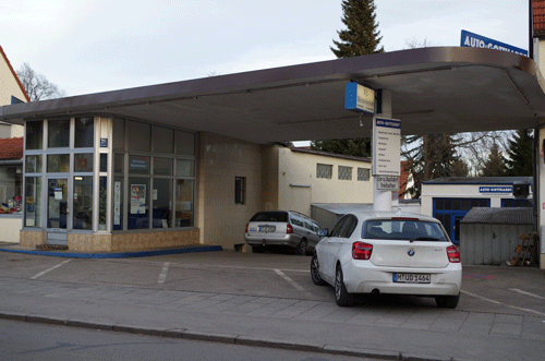 1960er-Jahre, mit der Mächtlinger Shell-Tankstelle
