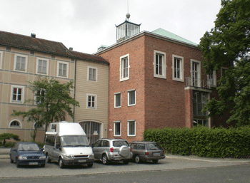 oben: Schmitthenner-Bau, Eingang am Bogenhauser Kirchplatz, © dietlind pedarnig, 2007