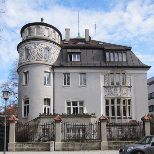 Die Villa ist ein durch sein schwungvolles Stuckdekor und den hervorspringenden ovalen Turm signifikantes Gebäude, das zu den ersten Häusern Münchens mit Dekor im Jugendstil zählt – wahrscheinlich ist es der älteste erhaltene Jugendstilbau Deutschlands überhaupt. Dieser Meilenstein der Architekturgeschichte wurde 1896 bis 1898 für Clemens Freiherr von Bechtolsheim von Martin Dülfer gebaut – der erste Wohnbau des großen Architekten, das Dekor entstand wahrscheinlich nach Entwürfen von Richard Riemerschmid. Das Gebäude steht unter Denkmalschutz und erhielt nach einer vorbildlichen Renovierung um 1970, bei der sich dem Originalzustand der Villa weitgehend wieder angenähert wurde, den Fassadenpreis der Landeshauptstadt München.