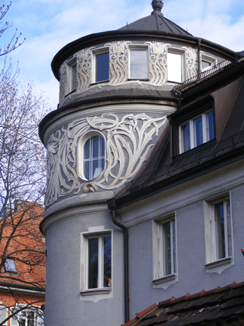 Die Villa des Ingenieurs und Erfinders Bechtolsheim hat einen raffinierten Grundriss: Im Hochparterre gehen alle Gesellschaftsräume von einer achteckigen, zentralen Halle aus, deren abgeschrägte Ecken geschickt als Verteilerräume oder als Zugänge zu den Salons genutzt werden. Durch Entfernung von nur zwei breiten Glastrennwänden konnte das Treppenhaus mit der Halle und dem Wintergarten zu einer großzügigen Raumflucht von etwa 15 Meter Länge verbunden werden. Im Obergeschoss befanden sich die Schlafräume und im Dachgeschoss die Dienstbotenzimmer. Interessant ist dort eine Trennwand aus Glasbausteinen zwischen Bad und Diele – die älteste Verwendung dieses Baumaterials in München. Das Turmzimmer mit seinen fast rundum angebrachten Rechteckfenstern bietet einen wunderbaren Ausblick auf das Grün der Maximiliansanlagen und diente dem Hausherrn als Zeichenzimmer. Im Boden war eine verschließbare Öffnung, durch die ein sogenanntes Tischlein-deck-dich heraufgezogen werden konnte. Von höchster Qualität sind die Schmiedeeisenarbeiten der Geländer und auch die Stuckaturen. Immer wieder kehrt in den Innenräumen die Sonnenblumenornamentik des Jugendstils wieder.