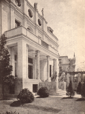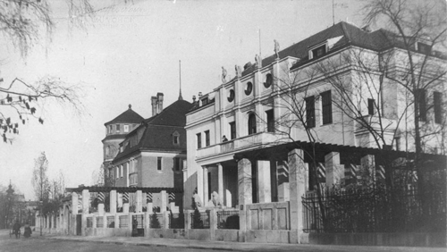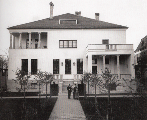 Die asymmetrische und modern wirkende Gartenfassade der Becker-Villa, November 1904. Sie bildet einen starken optischen Kontrast zur neoklassizistischen Straßenfront der Villa. (Foto: Georg Pettendorfer)