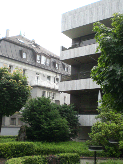 Rechts im Bild der Neubau anstelle der Beckervilla, links die Bechtolsheim-Villa, Maria-Theresia-Straße Nr. 27, die dem gleichen Schicksal entkommen ist © dietlind pedarnig (2007)