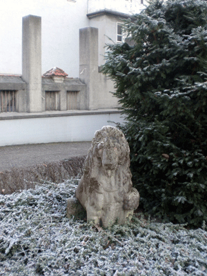 Einer der beiden Löwen des Haupteingangs (siehe Foto oben) als trauriger Überrest der ehemaligen Becker-Villa © dietlind pedarnig (2007)