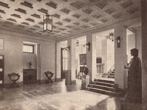 Die große Eingangshalle war in hellgetöntem Stuck ausgeführt, Türrahmungen und Sockel bestanden aus hellgrauem Bardiglio-Marmor, ebenso der Fußboden, der mit Friesen in »hell Siena« durchzogen war.