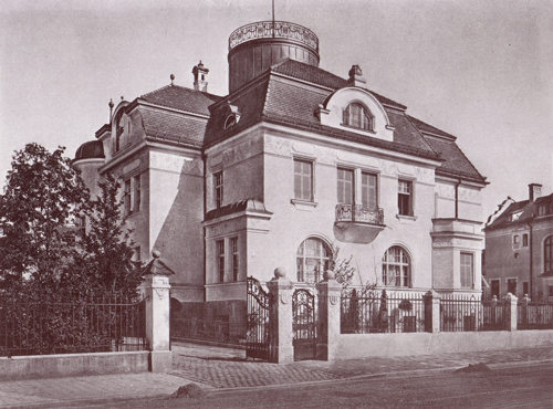 historische Aufnahme der Villa Bischoff, rechts ist noch die Villa Wetsch-Brügmann, Möhlstraße 6, zu sehen; Quelle: Buchscan s.o.