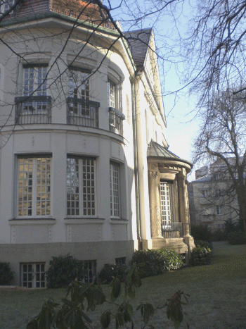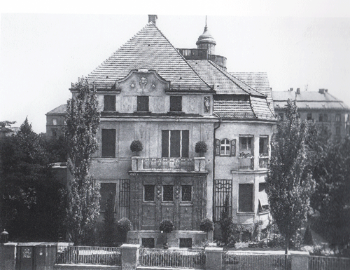 Mouse-over-Effekt: Pschorr-Villa in der Möhlstraße 2. Fotografie Georg Pettendorfer, 1909. Quelle: Stadtarchiv München, Sign. DE-1992-FS-NL-PETT1-4177 // Pschorr-Villa, 2007 © dietlind pedarnig