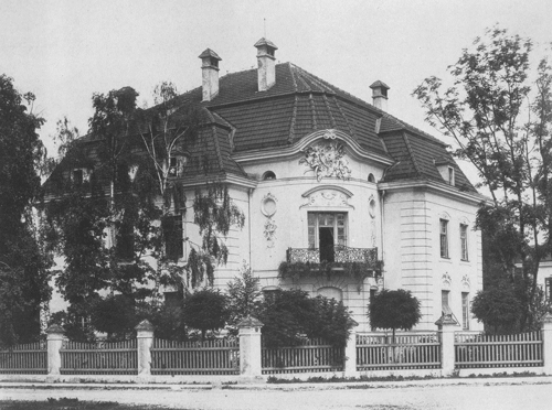 Mouse-over-Effekt: die Villa Düll um 1900 (Buchscan aus: s.o.) und im Mai 2008 © dietlind pedarnig (bitte mit der Mouse über das Bild fahren)