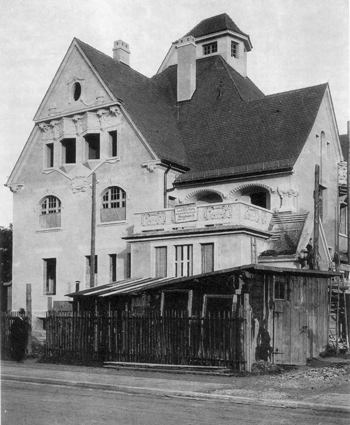 fertiger Rohbau der Wannieck-Villa (5.10.1906); Westfassade zur Möhlstraße; Buchscan: s.o.