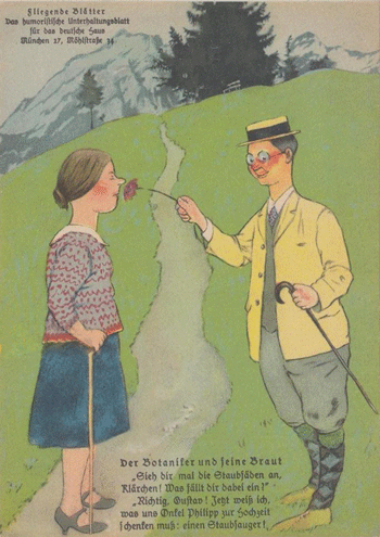 Seite aus den "Fliegenden Blättern", "das humoristische Unterhaltungsblatt für das Deutsche Haus, München 27, Möhlstraße 34".