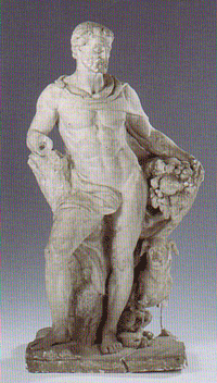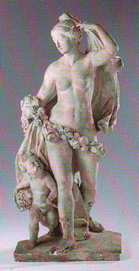 Gipsmodelle »Kraft« und »Schönheit« von Heinrich Düll, Georg Pezold, München 1901/02. Die ausgeführten Steinskulpturen wurden als Torpfostenschmuck in der ehem. Villa Kustermann aufgestellt. Buchscan aus: Norbert Götz (Hrsg.): Friedensengel, Münchens 1999, S. 275.