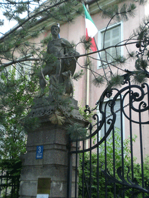 Balustrade und Figuren des Seitengebäudes der Kustermann-Villa, erbaut zur Unterbringung von Dienstpersonal © dietlind pedarnig (2007)