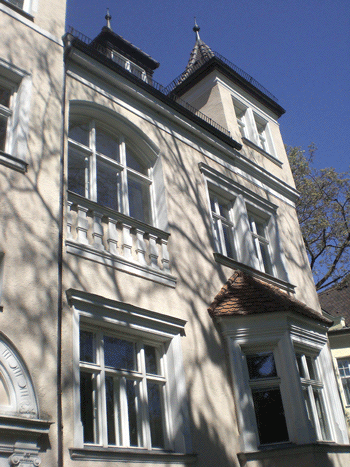 Der die beiden Villenhälften verbindende, gemeinsame Mittelrisalit, in dem die unwichtigen Räumen wie Magdzimmer oder Badezimmer untergebracht waren © dietlind pedarnig, 2008.