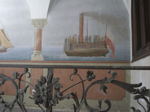 Malereien mit Relief-Engel am Kamin in der Halles des Erdgeschosses © dietlind pedarnig, 2008.